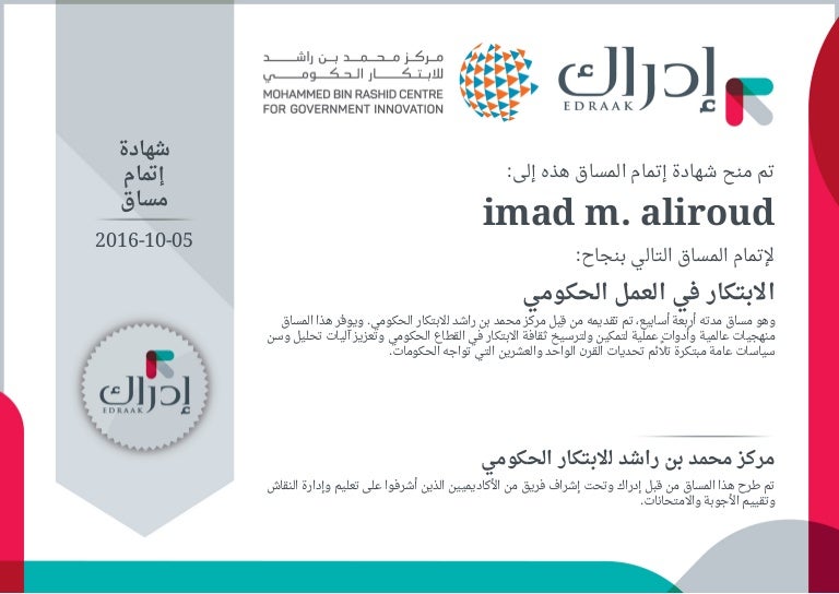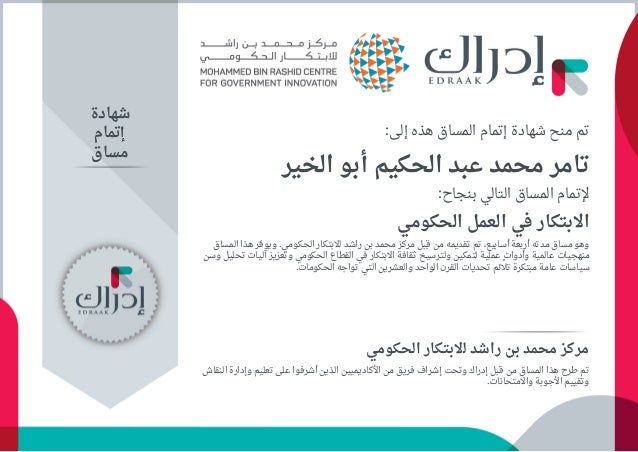 دورة الابتكار في العمل الحكومي مقدمة من منصة إدراك شهادة مجانية المنحة