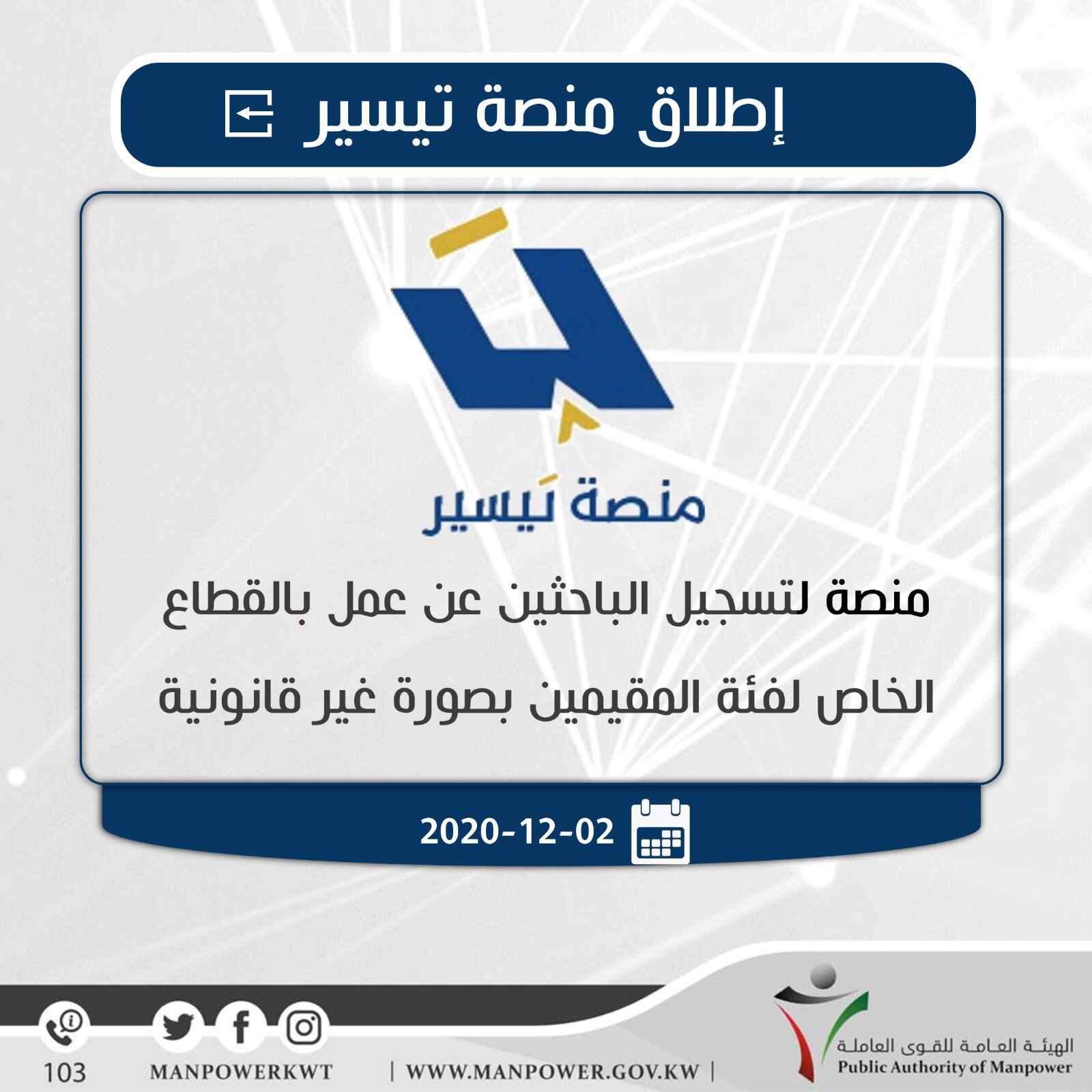 منصة تيسير تسجيل الباحثين عن عمل من المقيمين بالكويت خبرنا