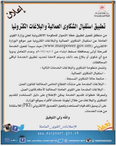وزارة العمل سلطنة ع مان على تويتر تطبيق استقبال الشكاوي العمالية والبلاغات الكترونيا وانت فمكانك خدمات وزارة القوى العاملة