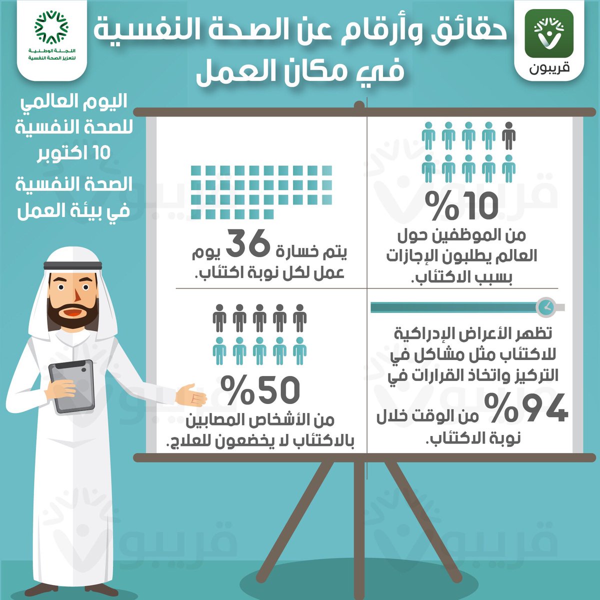 المركز الوطني لتعزيز الصحة النفسية Na Twitteru تطبيق قريبون حقائق وأرقام عن الصحة النفسية في مكان العمل Https T Co Jmo66wfqzy