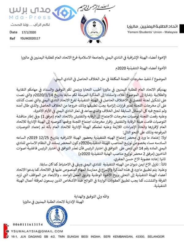 ينظم الاتحاد العام للطلبة اليمنيين في الصفحة الرسمية للإتحاد العام للطلبة اليمنيين في ماليزيا Facebook