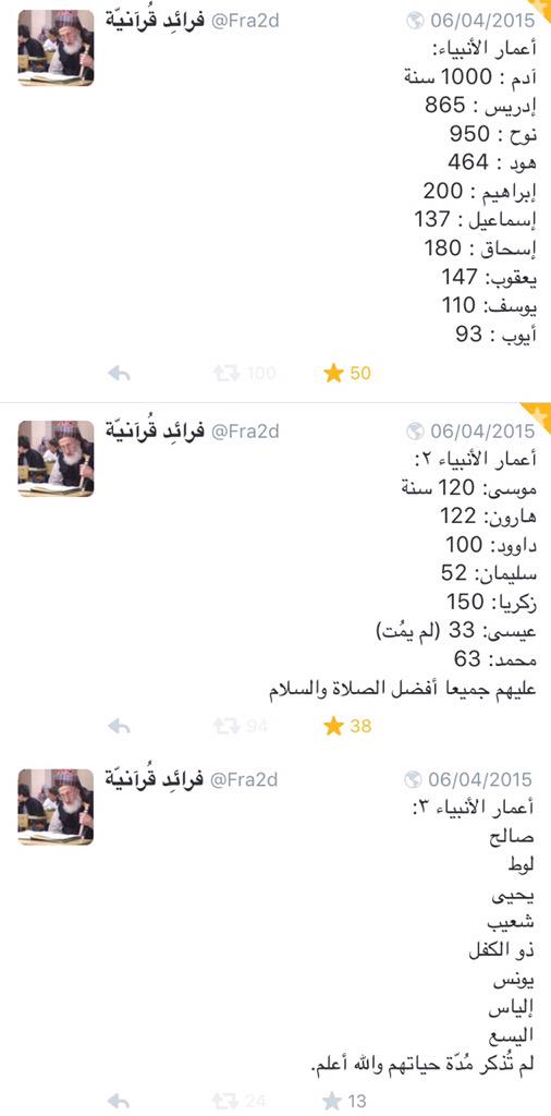 ট ইট র فرائد ق رآني ة بين آدم ونوح ١٠٠٠ سنة وبين نوح وإبراهيم ١٠٠٠ سنة وبين إبراهيم وموسى ٧٠٠ سنة وبين موسى وعيسى ٥٠٠ سنة وبين عيسى ومحمد ﷺ ٦٠٠ سنة