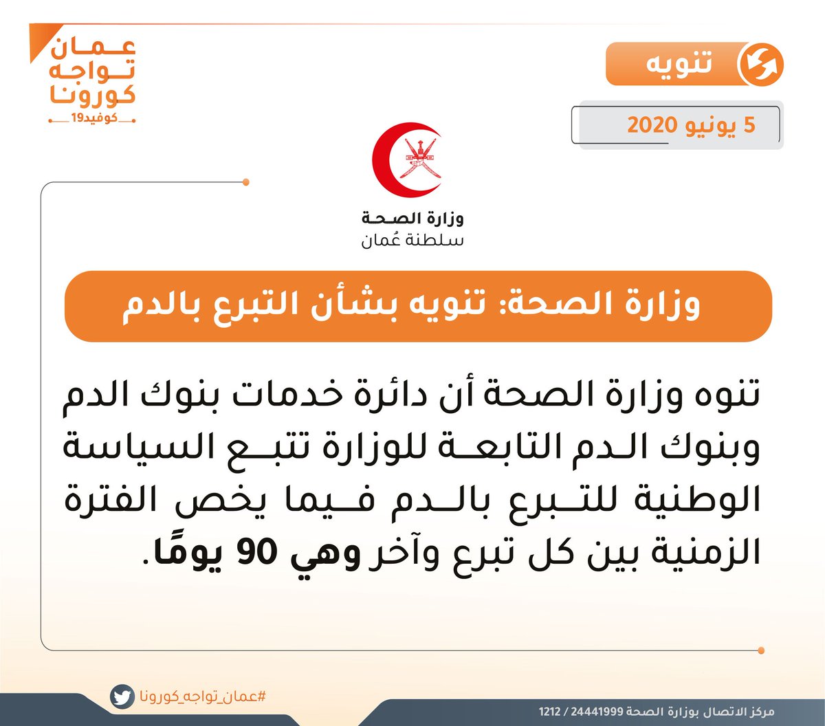 ع مان تواجه كورونا Sur Twitter دائرة خدمات بنوك الدم وبنوك الدم التابعة لوزارة الصحة تتبع السياسة الوطنية للتبرع بالدم فيما يخص الفترة الزمنية بين كل تبرع وآخر وهي ٩٠ يوما عمان تواجه كورونا