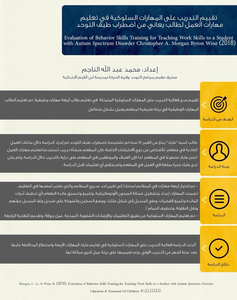 محمد بن عبدالله الناجم On Twitter ترجمة عن التدريب المهني التوحد تقييم التدريب على المهارات السلوكية في تعليم مهارات العمل لطالب يعاني من اضطراب طيف التوحد Speciaedl Alaasalnajim Https T Co Fynimihbqd